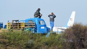 • Znovuobjevené dobové archivní foto poslední generace Avie B-534-X (letící stroj). Jedná se o poslední dochovaný snímek před osudovým průzkumným letem do Nového Mexika. Stroj se vinou technické závady zřítil v málo obydlené oblasti u města Roswell. V popředí stojí nezajímavá Avia B-534 ještě s konvenčním pohonem. Zdroj: Archiv Avia.