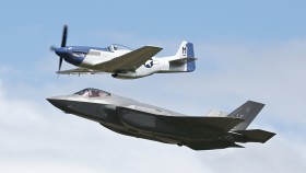 Tak trochu neočekávaně a mimo rámec tradičních a vždy "pístových" Flying Legends v Duxfordu byl letos zařazen i "The Heritage Flight", kdy Mustanga doprovázel tento F-22A Raptor (i když svým způsobem je to vlastně taky už létající legenda...).