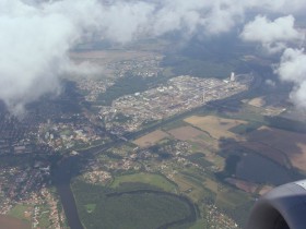 Pohled z letadla na město Neratovice
