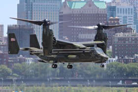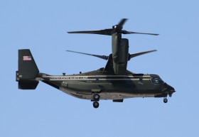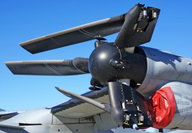 Detailní záběr na část motoru Allison AE 1107C a "složenou" vrtuli.