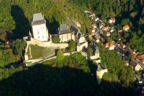 Hrad Karlštejn v podvečerním záříjovém slunci