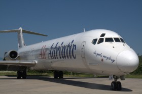 Pohled na letíště na ostrově Krk,v popředí se připravuje na odlet Iljušin IL76