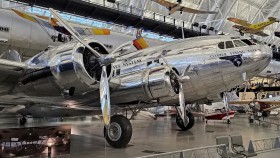 Pohled na zrekonstruovaný Boeing B-29 "Enola Gay". Smithsonian Air and Space Museum, Udvar-Hazy Center.